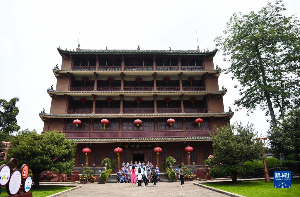 6月13日,在廣州博物館鎮海樓前,參觀(guān)者合影留念。