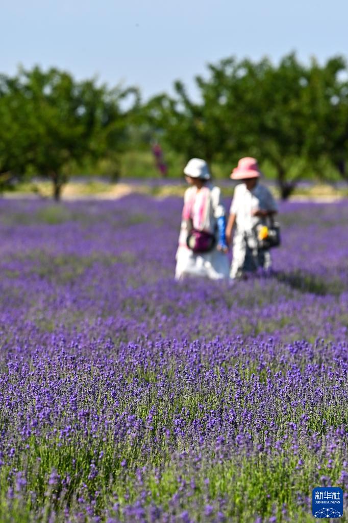 游客在位于新疆霍城縣蘆草溝鎮四宮村的解憂(yōu)公主薰衣草農場(chǎng)游玩(6月16日攝)。