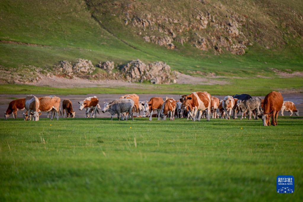 內蒙古赤峰市阿魯科爾沁草原游牧系統核心區總面積500萬(wàn)畝,南連大興安嶺,西接錫林郭勒大草原,是天然的優(yōu)良牧場(chǎng)。眼下,阿魯科爾沁旗巴彥溫都爾蘇木的夏牧場(chǎng)迎來(lái)放牧黃金季節,綠色草原綿延不絕,在牛羊、氈房的點(diǎn)綴下更加多姿多彩。