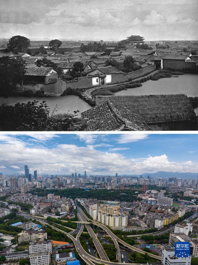 拼板照片:上圖為清朝末年的昆明城東小菜園一帶民居。(資料圖片 殷曉俊提供)