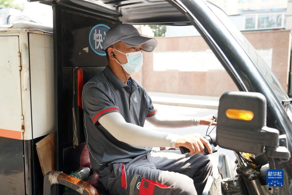 6月17日,順豐速運快遞員楊敬山駕駛快遞車(chē)行駛在北京市海淀區中關(guān)村街道中關(guān)村南四街。