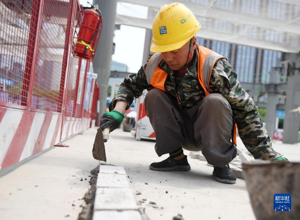 6月17日,在中建三局石景山商業(yè)金融服務(wù)業(yè)用地項目,工人在施工。為了應對高溫天氣,施工單位調整施工方案減少高溫工作時(shí)間,確保高溫下戶(hù)外勞動(dòng)者的安全。