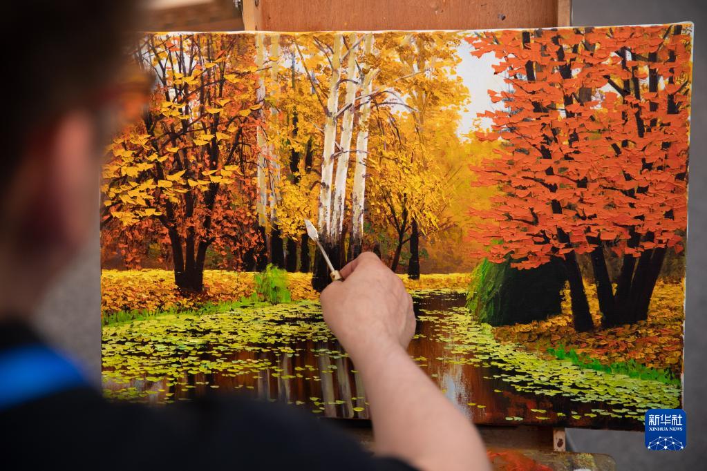 6月16日,俄羅斯畫(huà)家瓦西里在現場(chǎng)繪畫(huà)。