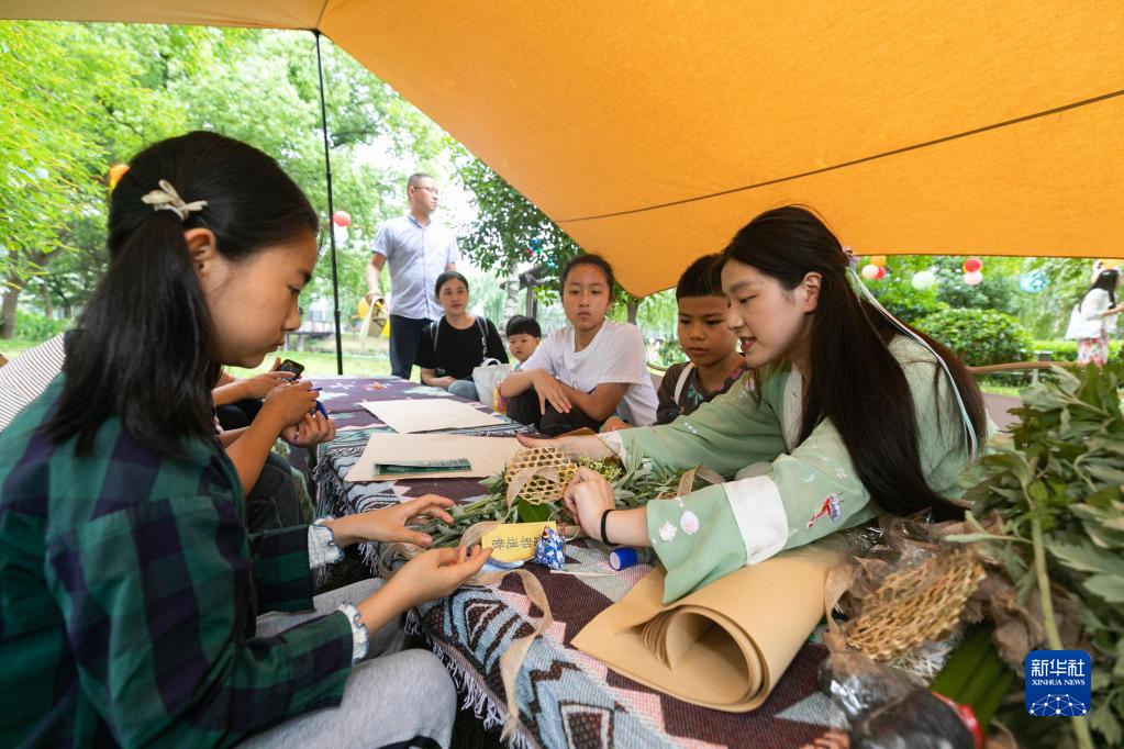 當日,浙江省湖州市吳興區東林鎮舉辦“慶端午 劃菱桶”趣味系列活動(dòng),來(lái)自各村的30多名選手一人一桶在泉益村的河塘里競相追逐,熱鬧非凡?;顒?dòng)現場(chǎng)還設有射五毒、做香囊、包粽子、做艾草花束等活動(dòng),讓百姓和游客在觀(guān)賞精彩比賽的同時(shí)了解特色端午習俗。