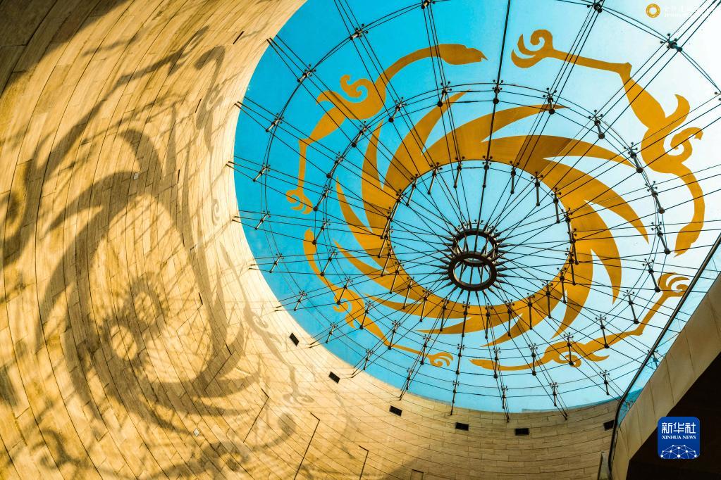 陽(yáng)光透過(guò)成都金沙遺址博物館陳列館穹頂(3月10日攝)。