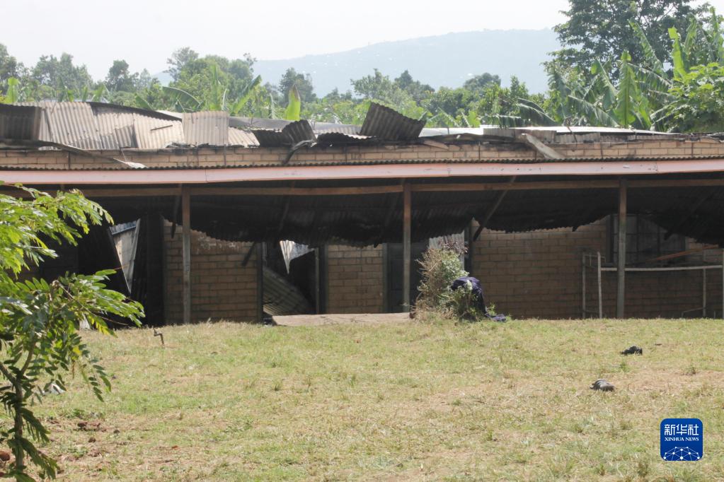 這是6月17日在烏干達西部卡塞塞地區拍攝的遭到襲擊的盧比里拉中學(xué)。