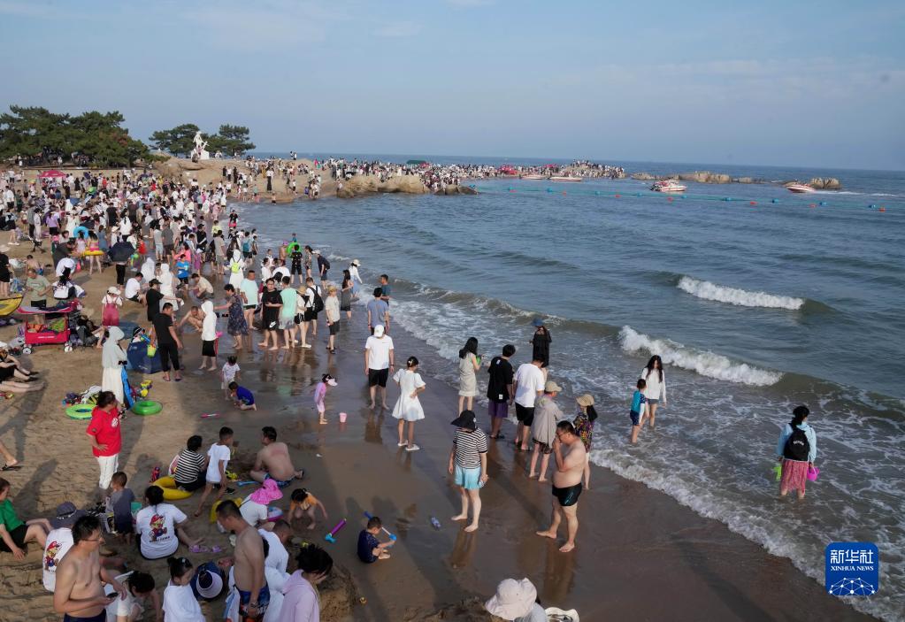 近日,部分省市遭遇高溫天氣,大批游客來(lái)到避暑勝地——河北省秦皇島市北戴河區,在各個(gè)景區、浴場(chǎng)休閑避暑。
