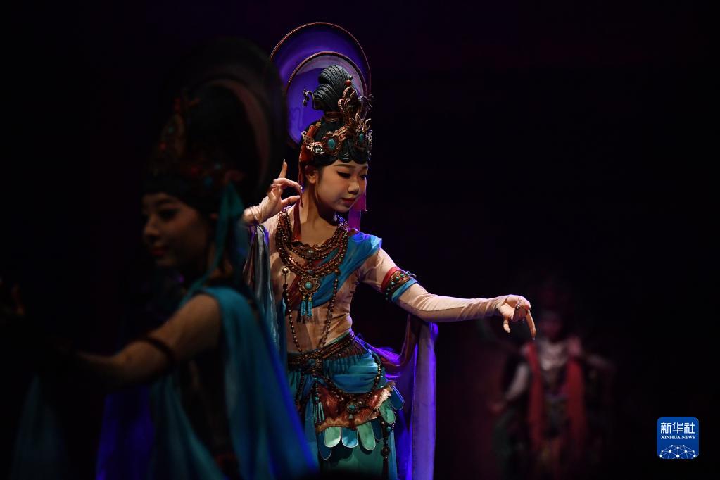 演員在大型洞窟式沉浸體驗劇《樂(lè )動(dòng)敦煌》中表演(6月17日攝)。
