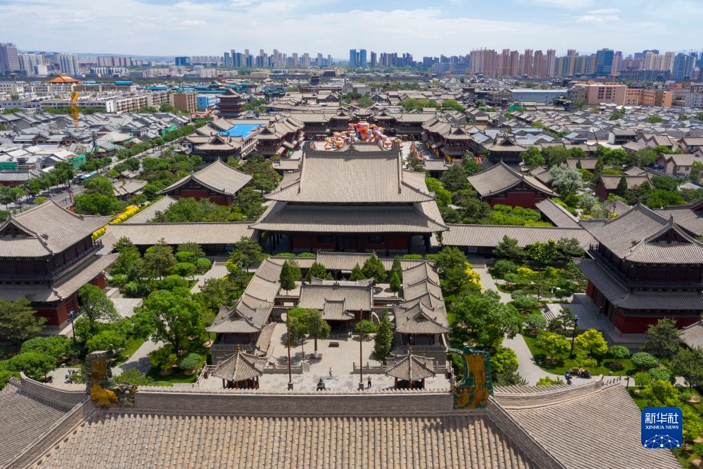6月8日拍攝的大同古城一角(2023年無(wú)人機照片)。