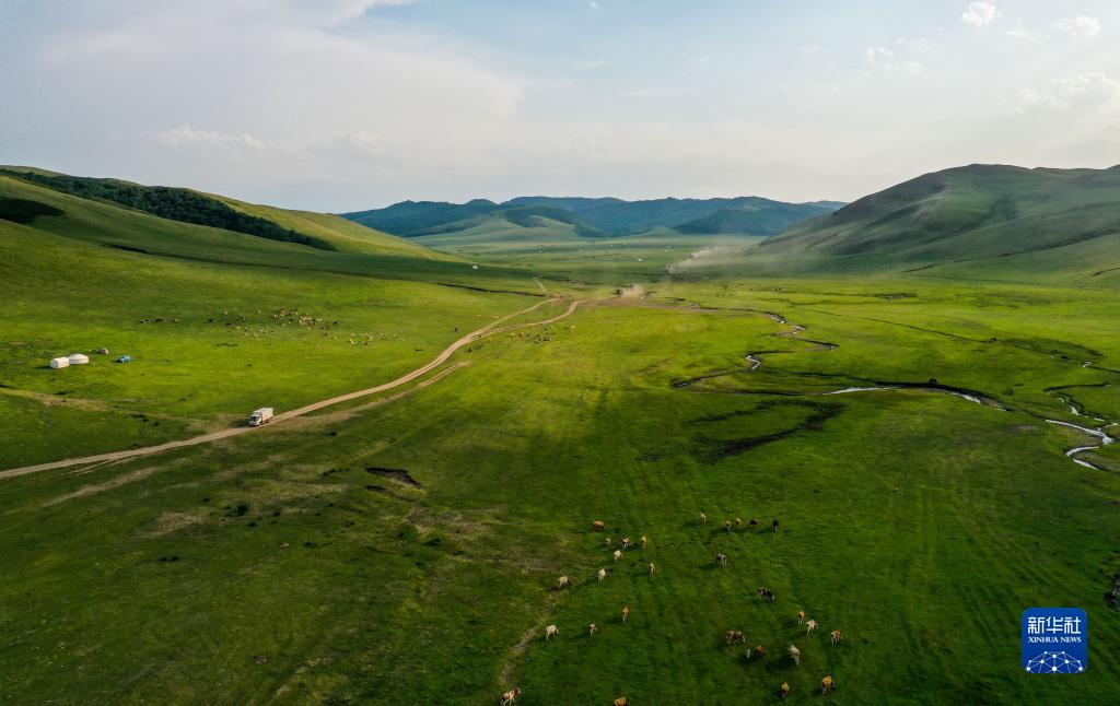 額爾敦巴特爾家的夏營(yíng)地位于渾都倫游牧區,西接錫林郭勒大草原,南連大興安嶺南麓,綠草如茵,氣候涼爽。抵達夏營(yíng)地后,一家人在周?chē)渌D場(chǎng)牧民的幫助下搭建起氈房,開(kāi)始了為期三個(gè)月的夏季放牧時(shí)光。