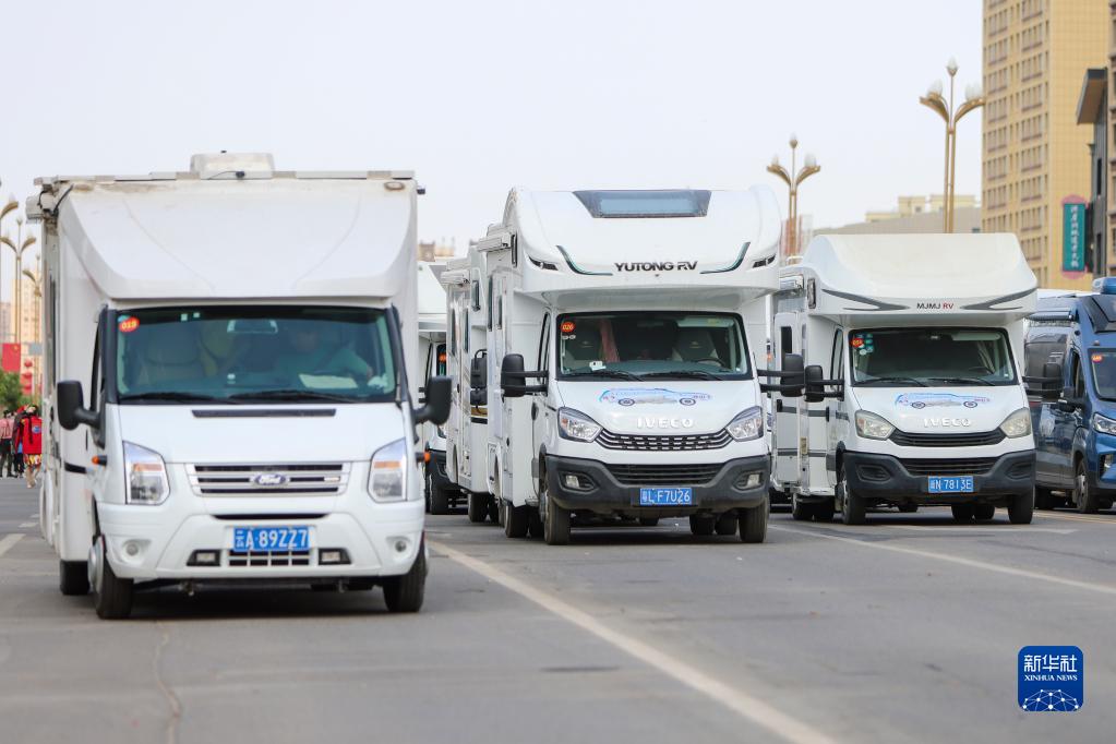 6月18日,在新疆阿克蘇地區庫車(chē)市,車(chē)輛出發(fā)前往獨庫公路。