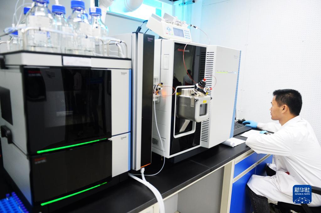 6月18日,中國皮革和制鞋工業(yè)研究院(晉江)有限公司科研人員在實(shí)驗室檢測鞋革樣本數據。