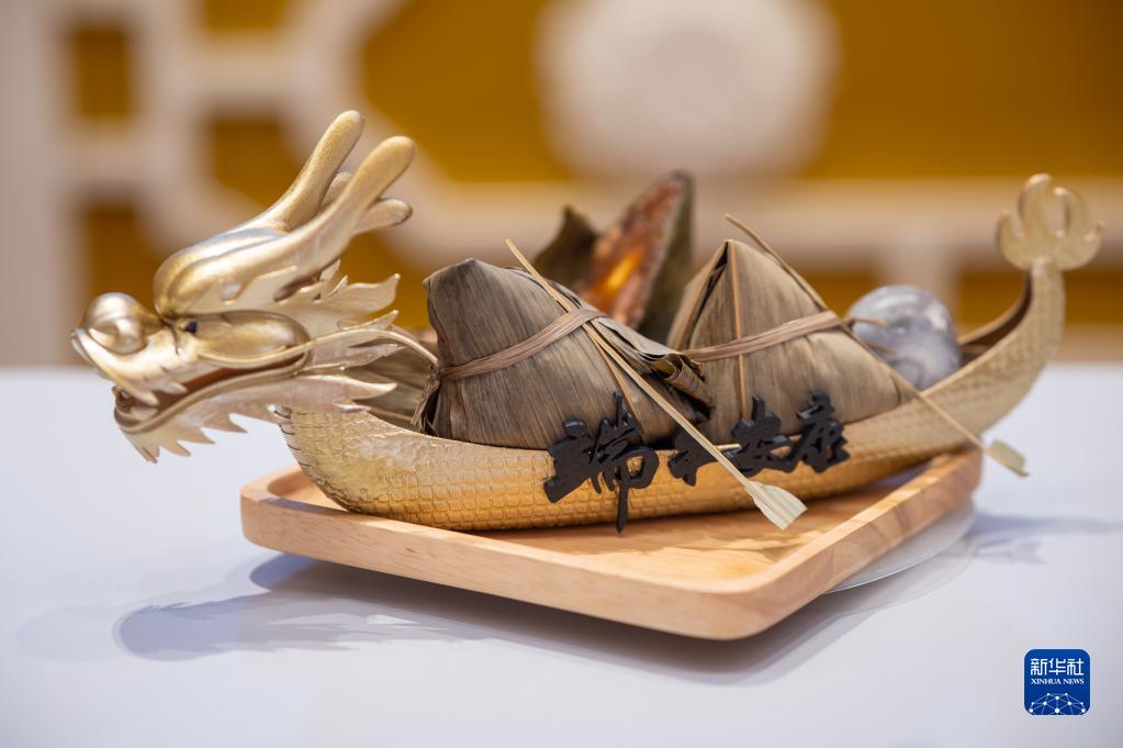 這是6月18日在馬來(lái)西亞吉隆坡的裹粽比賽現場(chǎng)拍攝的粽子。