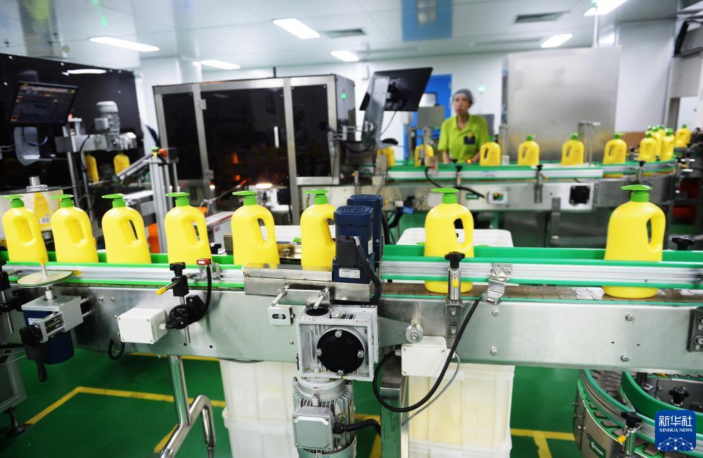 6月18日,在位于福建漳州的青蛙王子集團,工人在洗護工廠(chǎng)智能化車(chē)間工作。