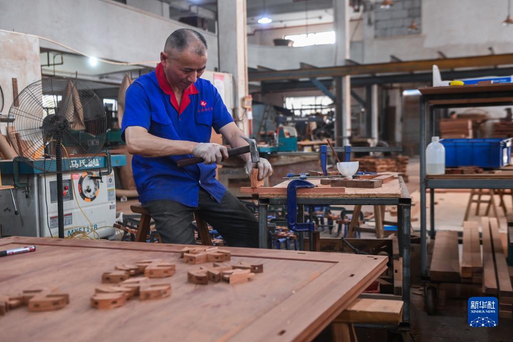 6月19日,在位于東陽(yáng)市南馬鎮花園村的古藝福家具生產(chǎn)車(chē)間,工人在制作紅木家具?;▓@村是“中國紅木家具第一村”,已形成紅木家具全產(chǎn)業(yè)鏈和產(chǎn)業(yè)群。截至2022年底,花園村有紅木家具以及木制品行業(yè)1871家,占全村個(gè)私工商戶(hù)的63.42%。
