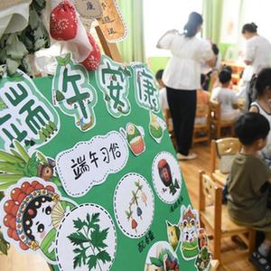 6月19日,在河北省邯鄲市廣平縣第四幼兒園,小朋友在家長(cháng)的幫助下學(xué)習包粽子。