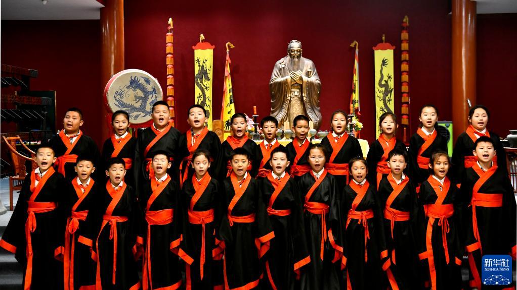 2023年6月9日,來(lái)自濟南大學(xué)附屬小學(xué)的同學(xué)們在曲阜市參加研學(xué)活動(dòng),并背誦《論語(yǔ)》。