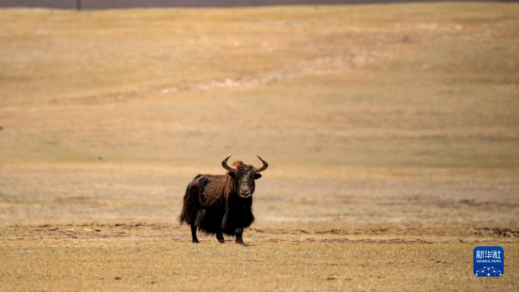 一頭野牦牛在可可西里卓乃湖區域活動(dòng)(6月18日攝)。