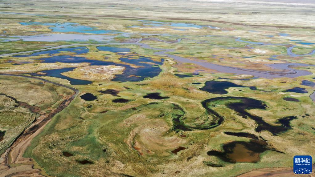 這是6月20日拍攝的鹽池灣濕地風(fēng)光(無(wú)人機照片)。