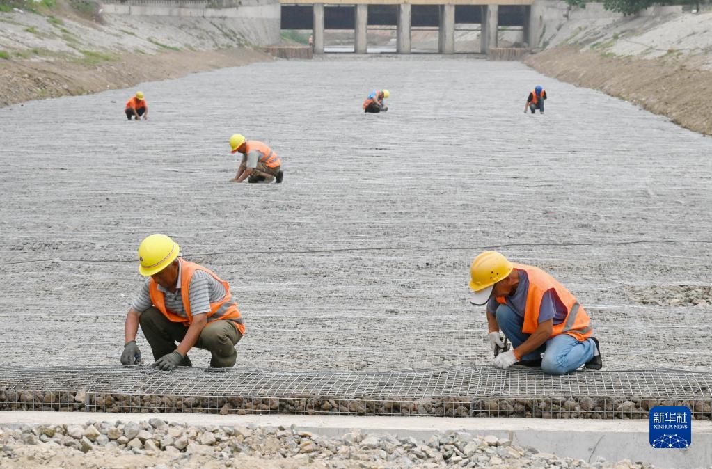 6月20日,工人在河北省盧龍縣木井鎮境內的龍鳳河水生態(tài)治理工程工地施工。