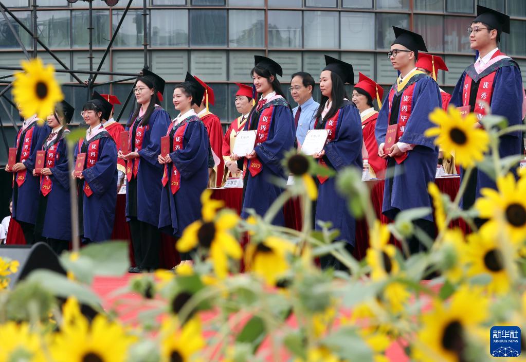 6月20日,在華東師范大學(xué)2023屆畢業(yè)典禮上,優(yōu)秀畢業(yè)生代表接受表彰。
