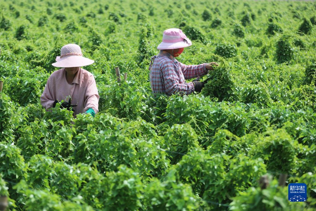 6月20日,河南省焦作市溫縣黃莊鎮西林肇村農民在鐵棍山藥種植基地進(jìn)行田間管理。