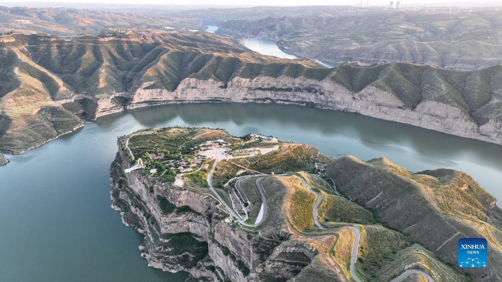 這是6月20日在內蒙古鄂爾多斯市準格爾旗拍攝的黃河大峽谷(無(wú)人機照片)。