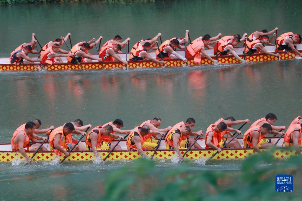 6月20日,選手們參加湖南省漣源市橋頭河鎮群眾龍舟賽。