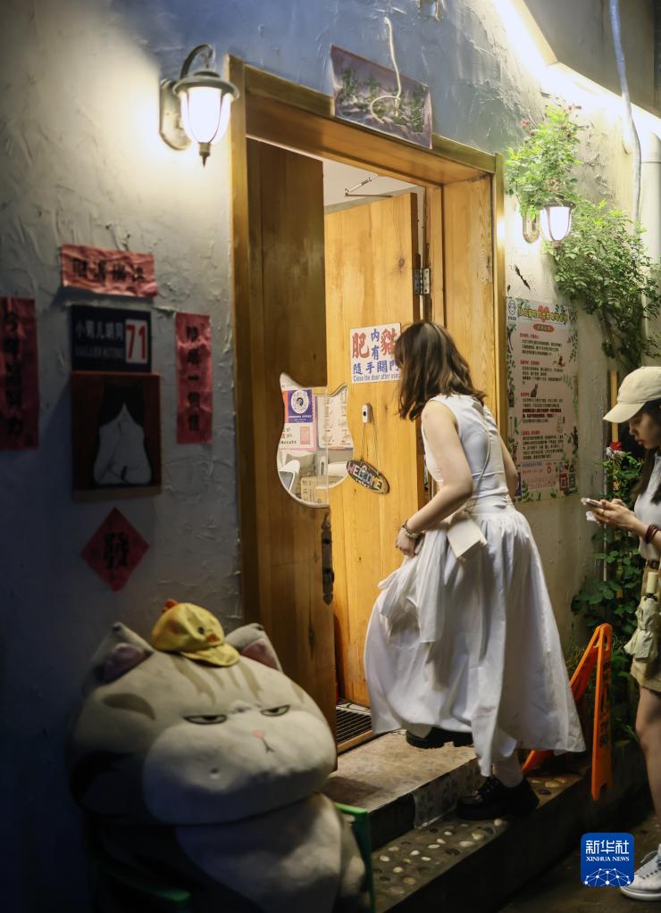 顧客進(jìn)入“鼓搗貓呢”的大門(mén)(6月19日攝)。