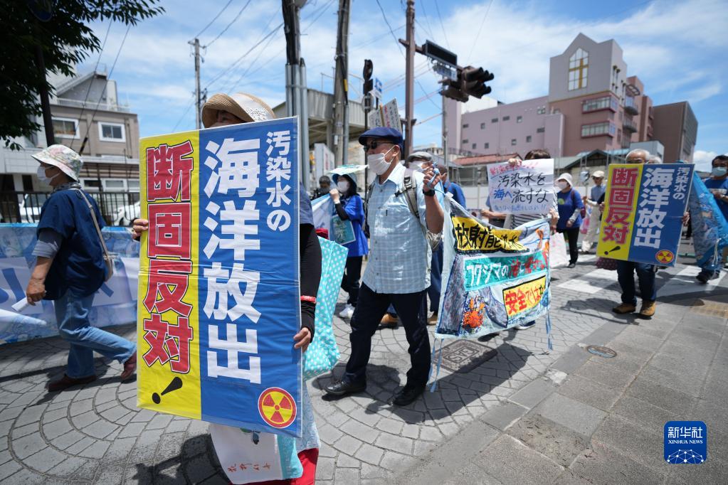 6月20日,人們在日本福島市參加反對核污染水排海的抗議活動(dòng)。