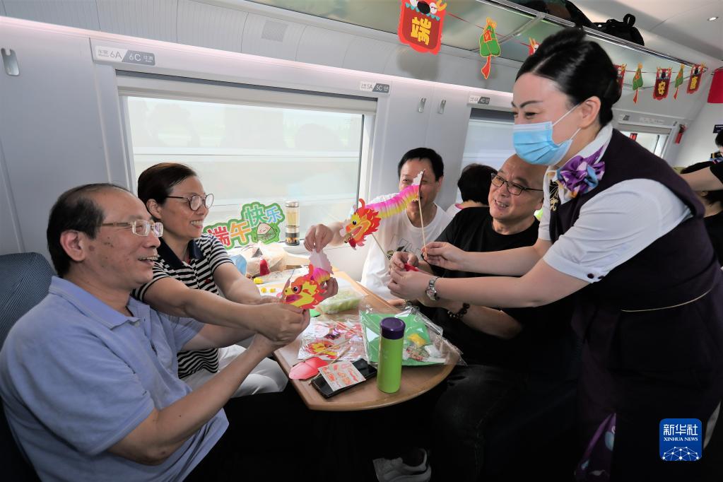 端午節前夕,鐵路上??瓦\段在列車(chē)上邀請旅客參加端午民俗活動(dòng),迎接端午佳節。