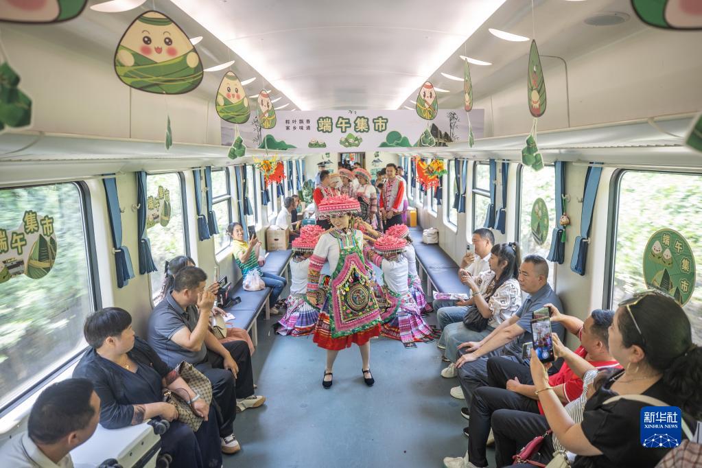 據介紹,從即日起至端午小長(cháng)假結束,中國鐵路成都局集團有限公司、重慶鐵路公安處、桐梓縣文化旅游局將聯(lián)合在遵義往返重慶西的5630\5629次列車(chē)上打造“端午集市”“民俗體驗”車(chē)廂,供旅客在節日期間打卡游玩,感受傳統民俗。
