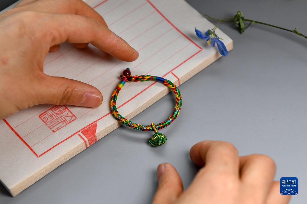 6月20日,在吉林省長(cháng)春市,徐曉雪展示端午節五彩繩。