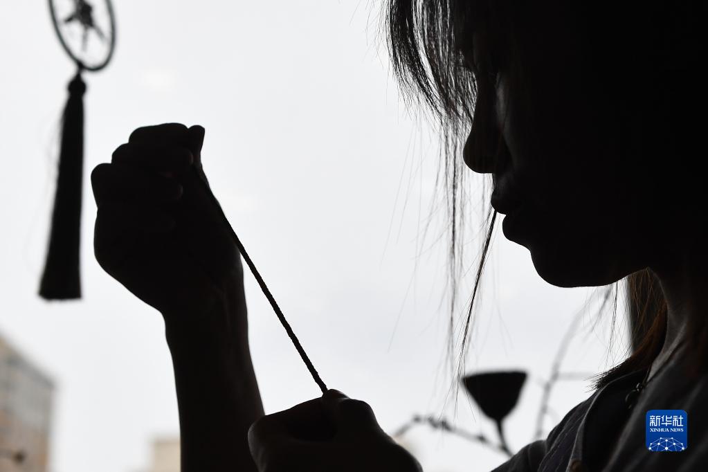 6月20日,在吉林省長(cháng)春市,徐曉雪編繩結工藝品。