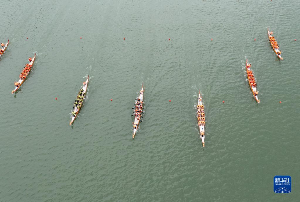 6月21日拍攝的2023年四川省百舟競渡迎端午集中展演活動(dòng)現場(chǎng)(無(wú)人機照片)。