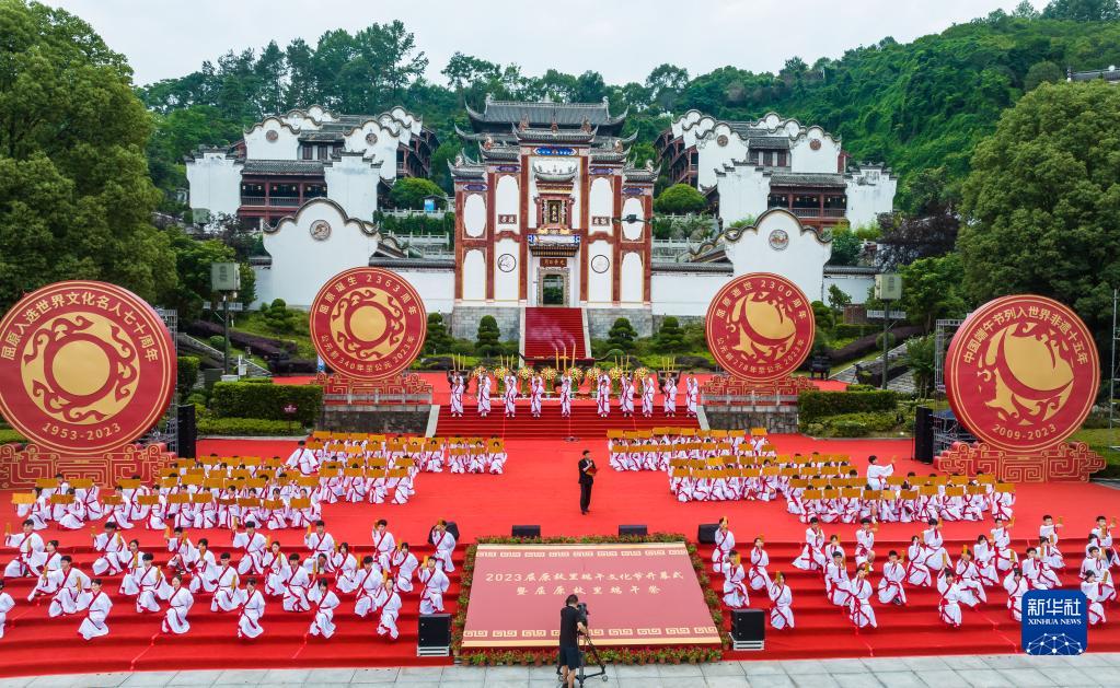6月21日,嘉賓與當地居民在開(kāi)幕式上共同誦讀屈原作品《離騷》(無(wú)人機照片)。