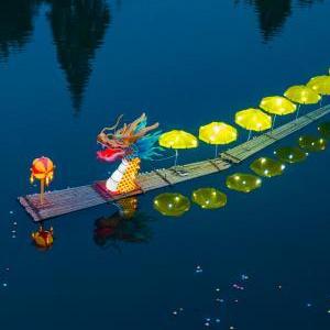 近日,為了迎接中國傳統節日端午的到來(lái),胡樂(lè )鎮舉辦長(cháng)桌宴、燈會(huì )盛宴等活動(dòng),游客們體驗美食,欣賞夜色中相互輝映的“魚(yú)燈”“河燈”“龍燈”,感受古老小鎮的端午民俗。