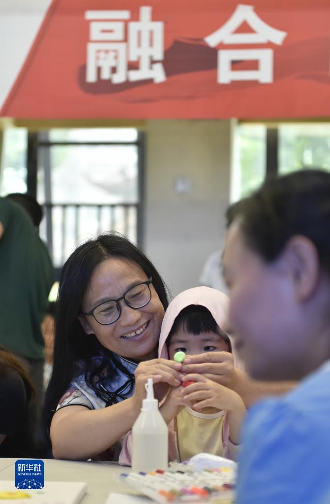 6月18日,在河南省鄭州市奇色花福利幼兒園,從該園畢業(yè)的普通兒童和特殊需要兒童重回幼兒園參加“老友記”聚會(huì )活動(dòng)。奇色花福利幼兒園創(chuàng )辦人蔡蕾在活動(dòng)現場(chǎng)帶著(zhù)孩子做游戲。