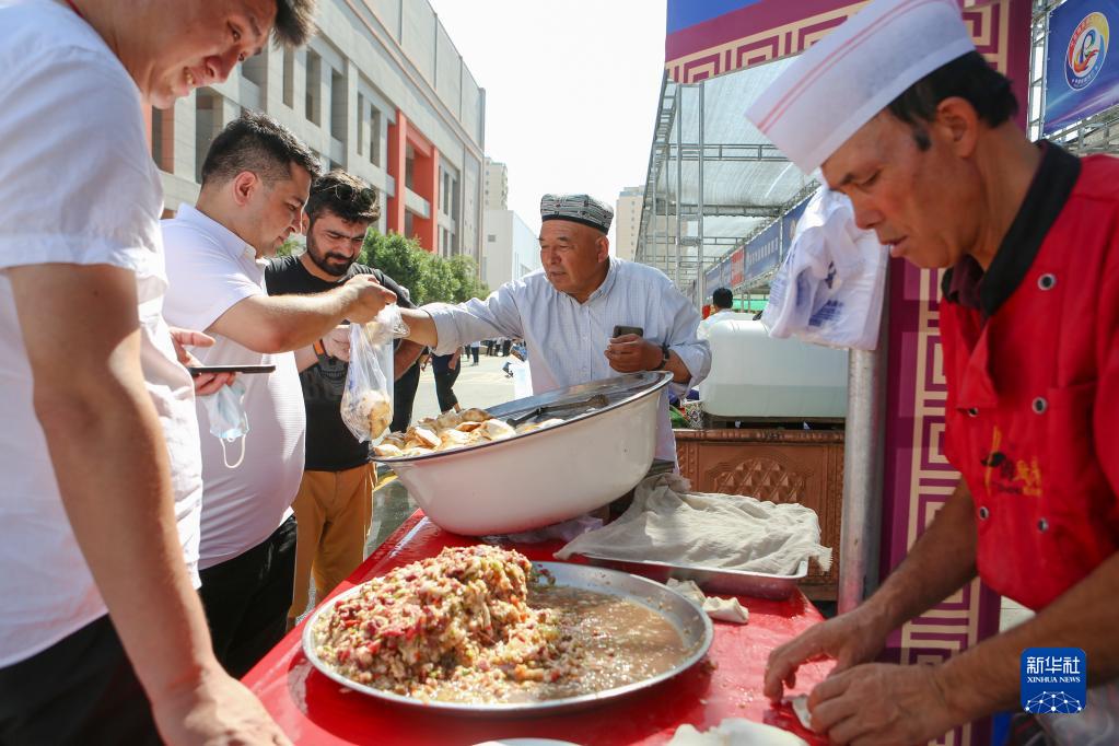 6月21日,參觀(guān)者在美食展上購買(mǎi)特色美食。