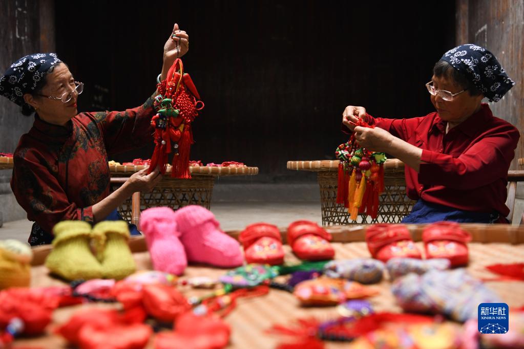 安徽省黃山市歙縣許村是一座有著(zhù)上千年歷史的古村落。每年端午節,父母、長(cháng)輩給孩子們送虎頭鞋、香囊掛件等是許村世代相傳的習俗。如今,許村仍有不少村民堅持手工縫制虎頭鞋、編制香囊掛件,這些“守藝人”希望能留住鄉村的文化底色,讓更多人了解、學(xué)習傳統技藝。