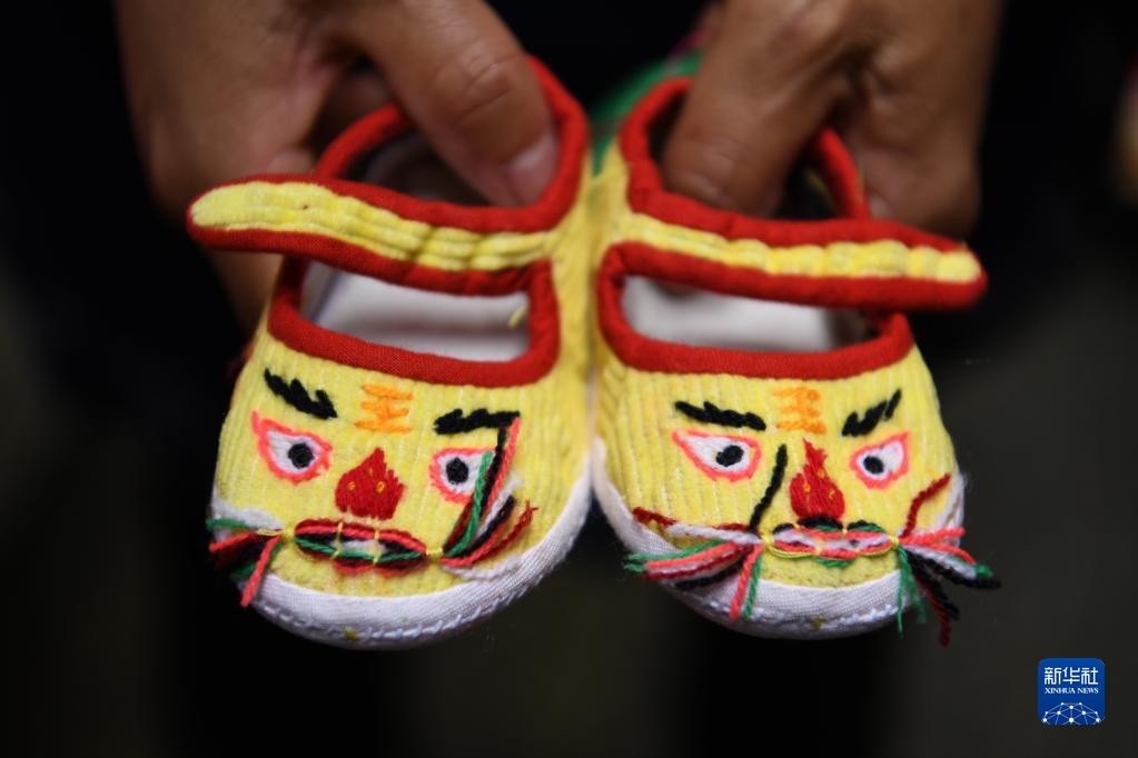 這是歙縣許村村民吳木蘭手工制作的虎頭鞋(6月21日攝)。