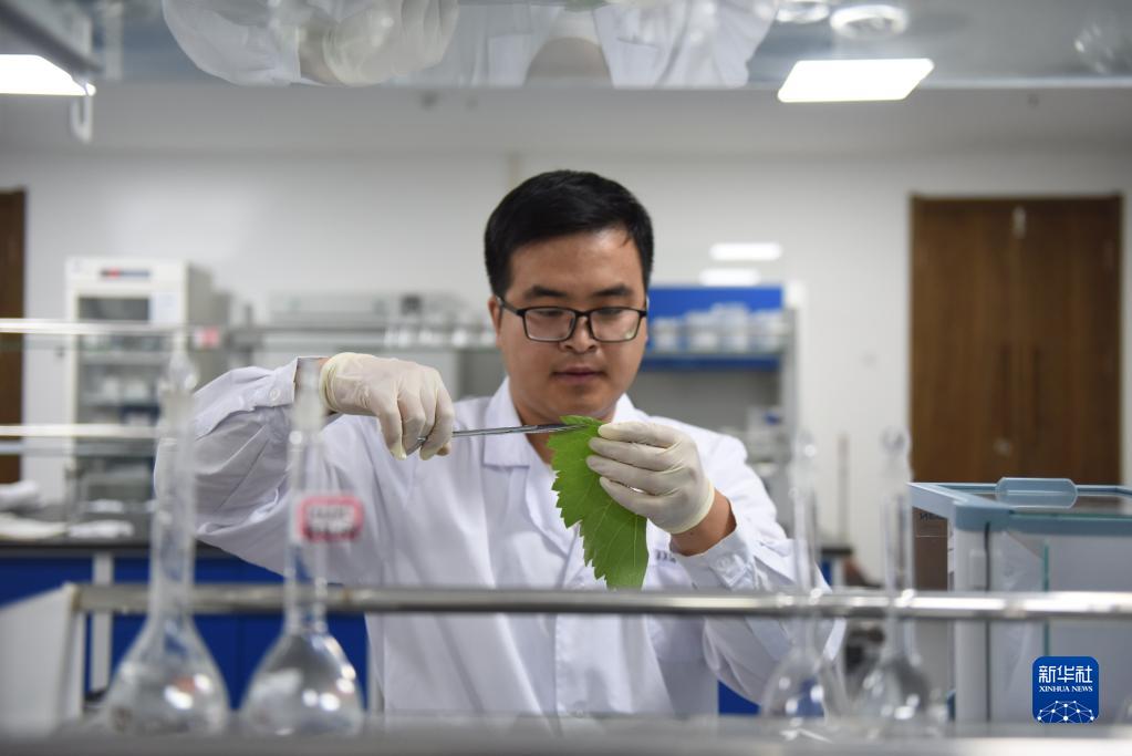 6月21日,在位于河北省懷來(lái)縣的河北省葡萄產(chǎn)業(yè)技術(shù)研究院,來(lái)自天津農學(xué)院的研究生韓亞奇正在分析葡萄葉的健康狀況。