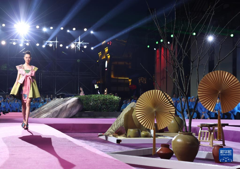 當日,2023重慶國際時(shí)裝周榮昌非遺之夜活動(dòng)在重慶市榮昌區夏布小鎮舉行。該活動(dòng)通過(guò)非遺時(shí)尚秀、靜態(tài)展示等形式呈現國家級非物質(zhì)文化遺產(chǎn)——榮昌折扇和榮昌夏布的魅力,迎接中國傳統節日端午節的到來(lái)。