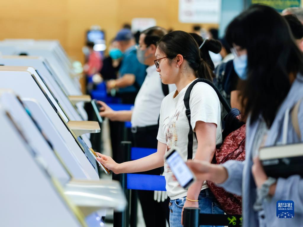 6月21日,在成都天府國際機場(chǎng)海關(guān)入境衛生檢疫健康申報通道,旅客掃碼通過(guò)智能閘機。