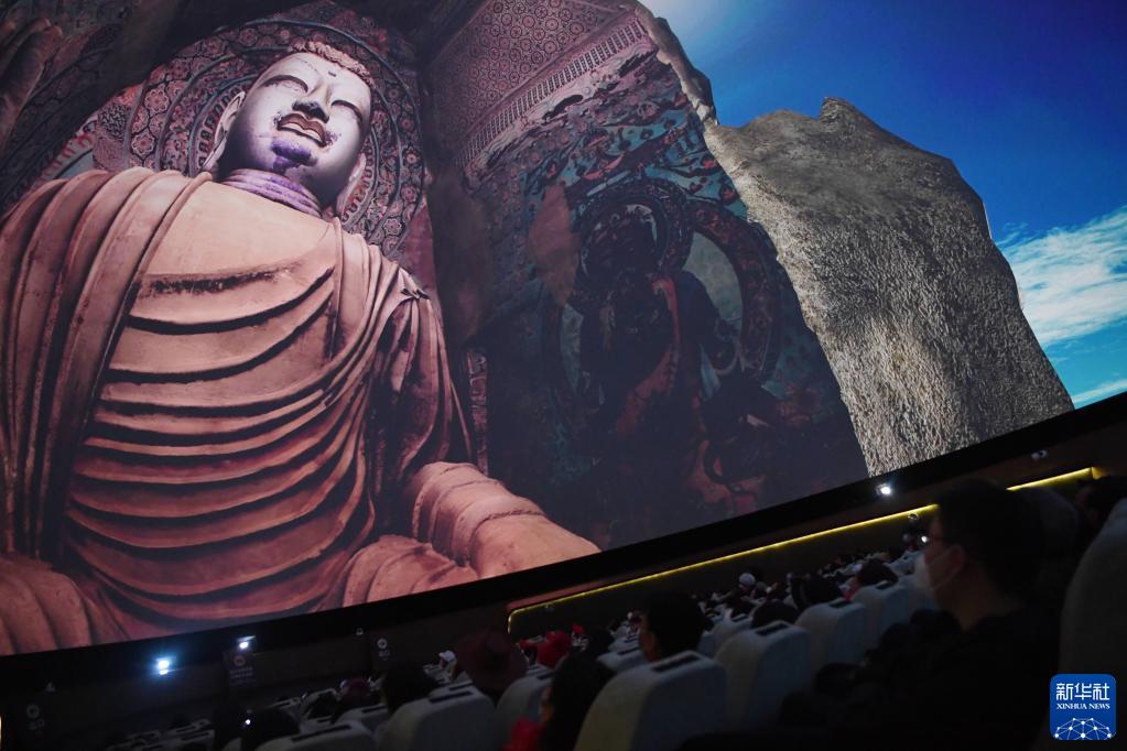 游客在莫高窟數字展示中心觀(guān)看球幕電影《夢(mèng)幻佛宮》(3月14日攝)。