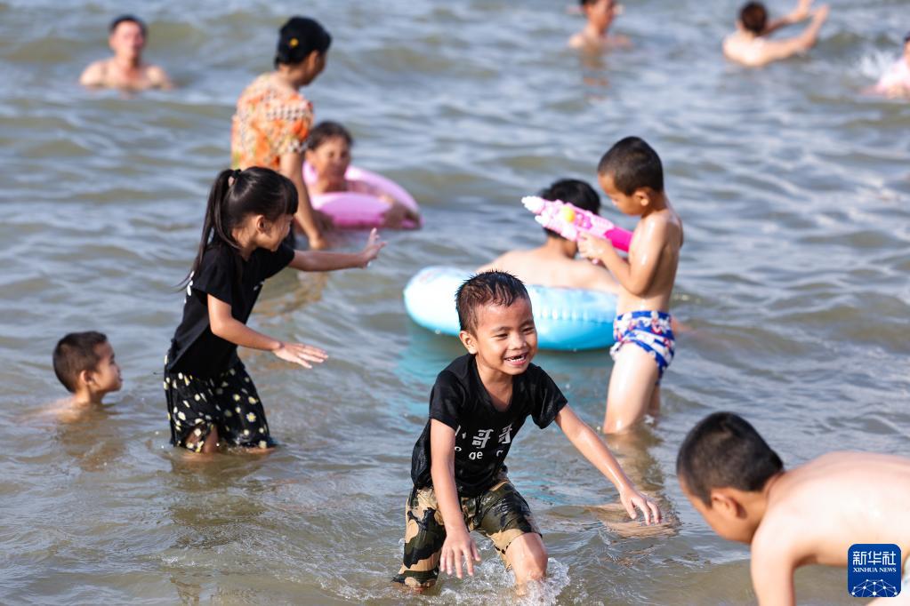 6月22日,小朋友在??诩偃蘸跋待埶?。