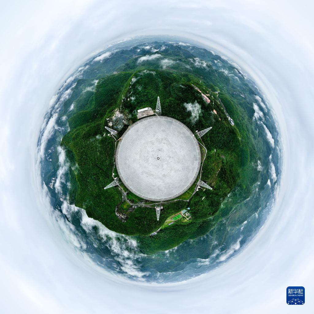 6月22日拍攝的“中國天眼”全景(維護保養期間拍攝,無(wú)人機照片)。