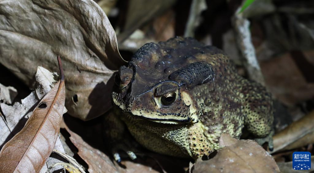 這是在海南熱帶雨林國家公園吊羅山片區拍攝的黑眶蟾蜍(6月14日攝)。