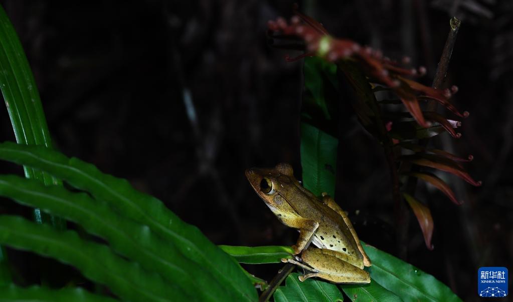 這是在海南熱帶雨林國家公園吊羅山片區拍攝的斑腿泛樹(shù)蛙(6月14日攝)。
