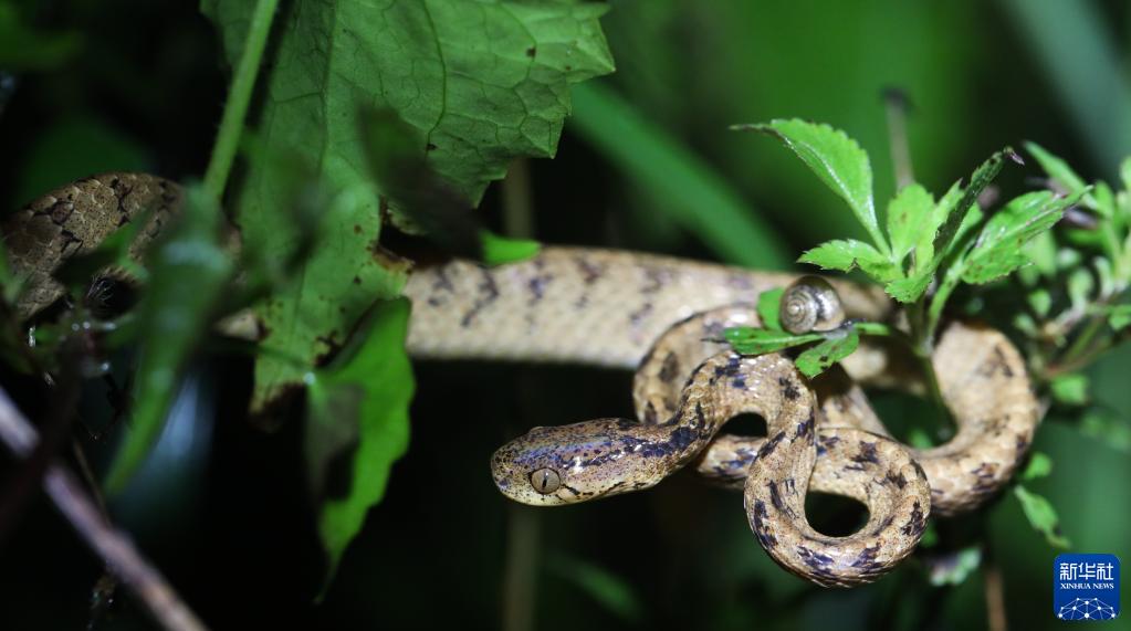 這是在海南熱帶雨林國家公園吊羅山片區拍攝的緬甸鈍頭蛇(6月13日攝)。